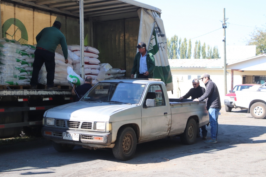 Los insumos entregados incluyen fertilizantes (mezcla y urea), semillas de avena strigosa y vicia, además de desinfectante para semillas, elementos clave para la siembra y el buen desarrollo de estas pradera.