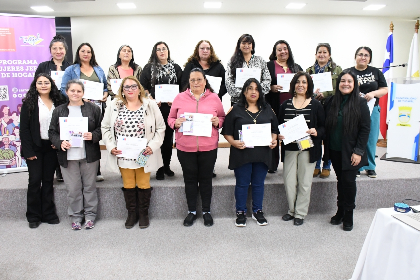 El Programa Mujeres Jefas de Hogar, que nuestra Municipalidad desarrolla en convenio con el Servicio Nacional de la Mujer y la Equidad de Género (SernamEG), realizó hoy la ceremonia de cierre del año 2025 e inicio del período 2026. Las usuarias que terminaron el proceso recibieron sus respectivas certificaciones, mientras que a las nuevas integrantes del programa se les entregaron sus materiales de trabajo.